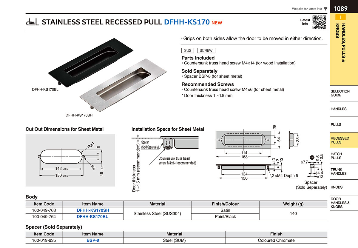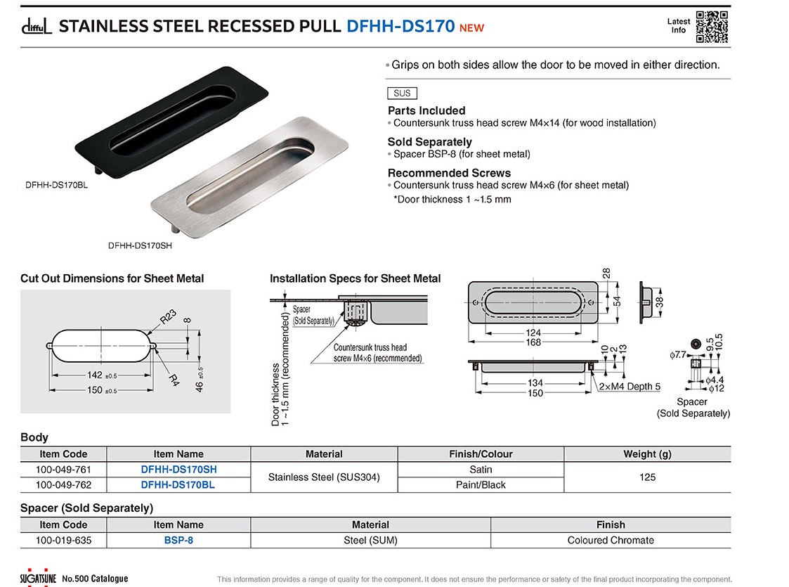 DFHH-DS170SH Ручка врезная SUS 304, сатин
