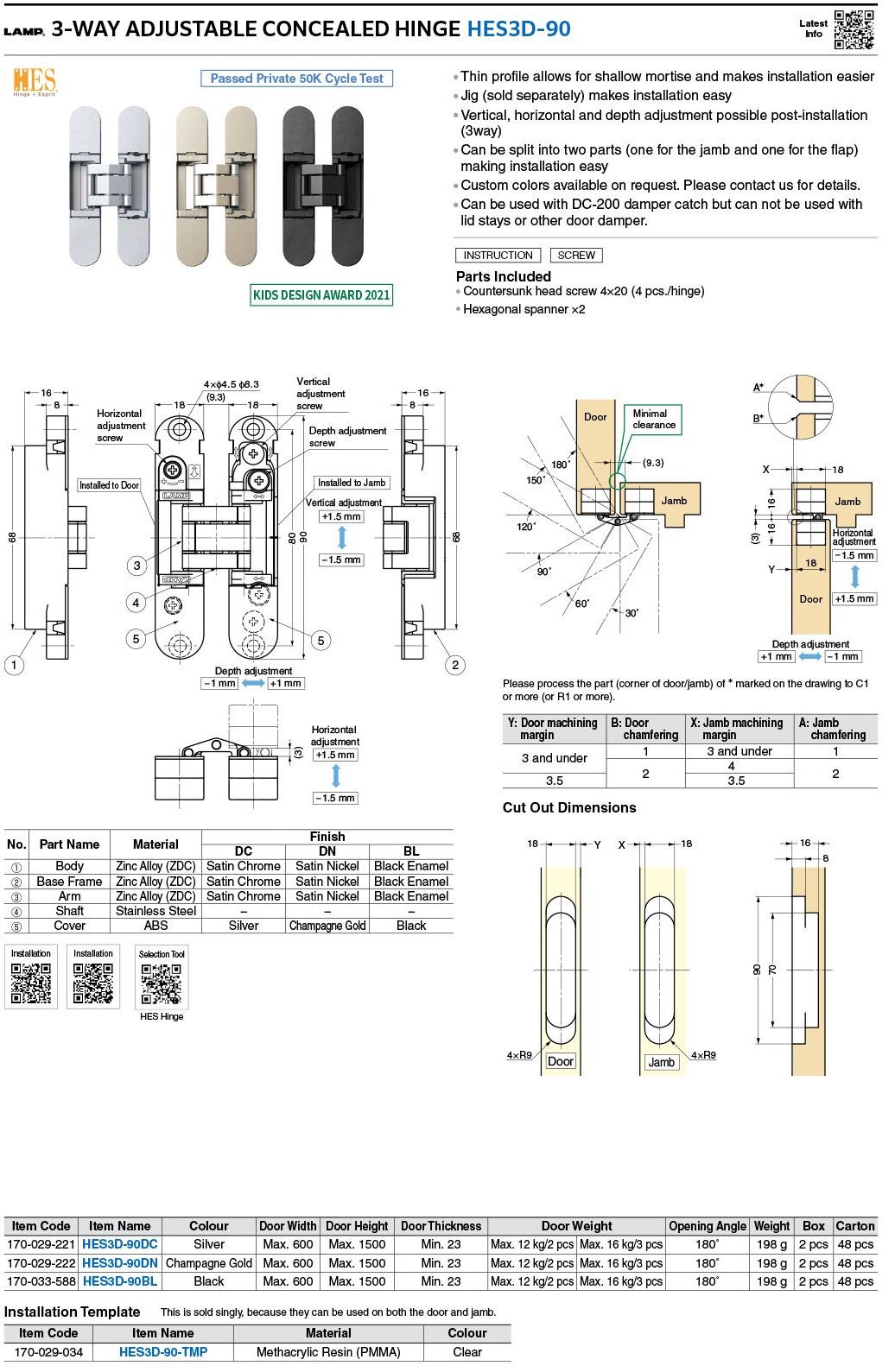 HES3D-90DN Петля врезная скрытая 3D регулировка, золото шампань