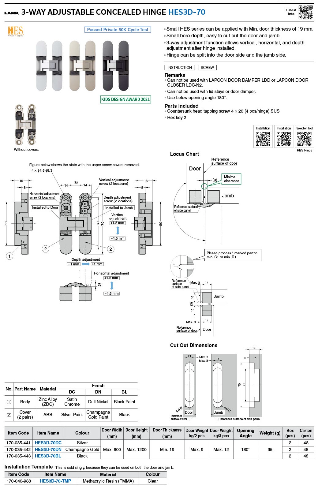 HES3D-70DC Петля врезная скрытая 3D регулировка, серебро
