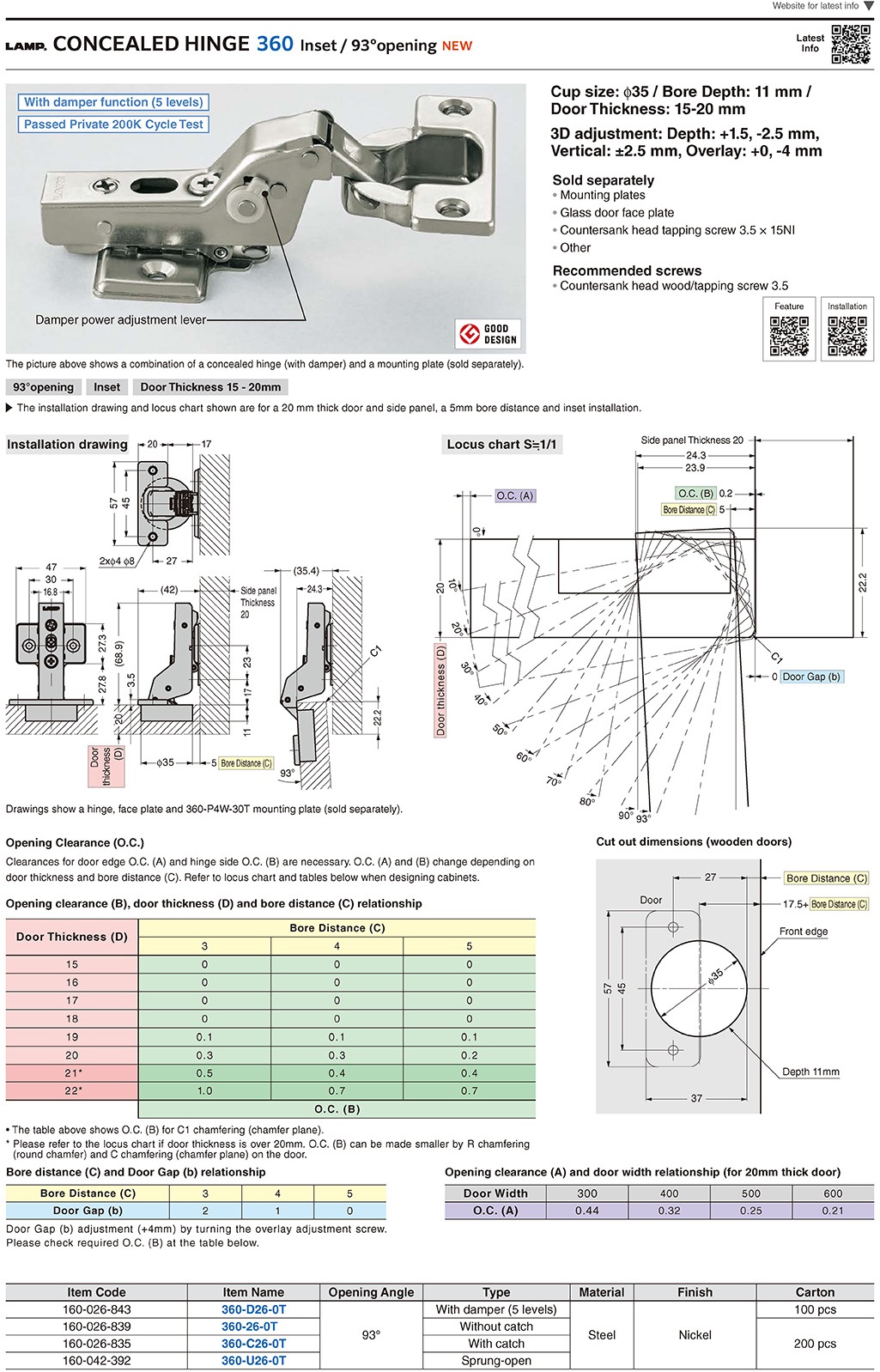 360-D26-0T Петля Olympia внутренняя с плавным закрыванием, угол открывания 93°