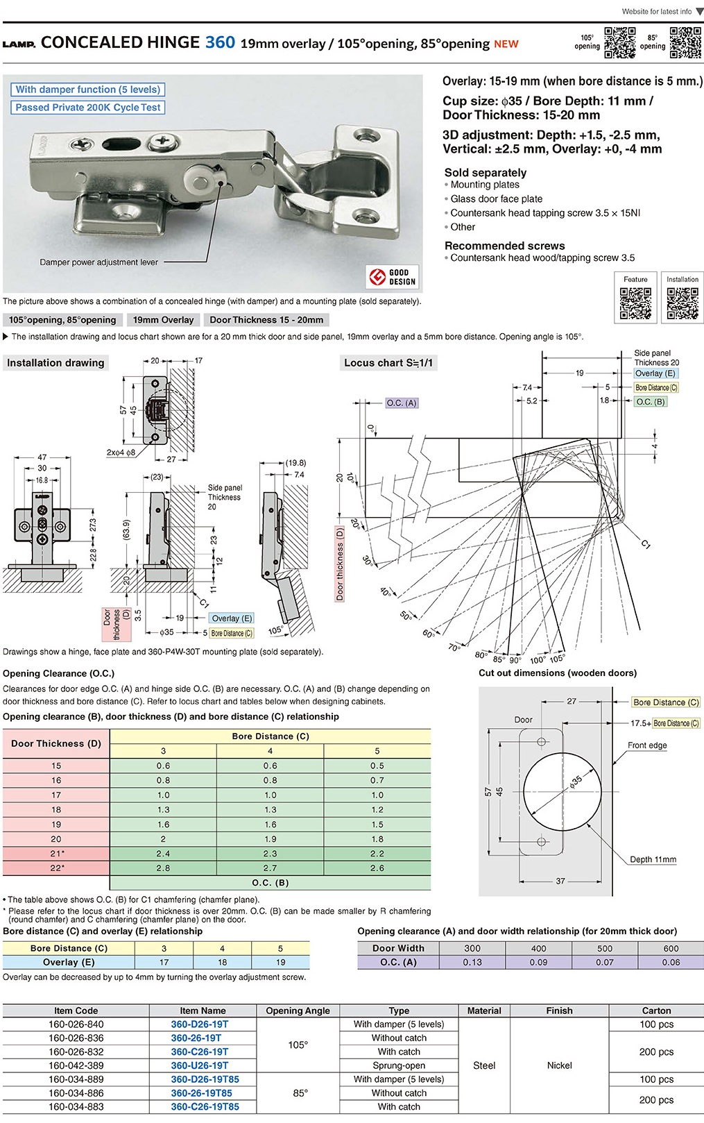 360-C26-19T Петля Olympia накладная с пружиной, наложение 15-19 мм, угол открывания 105°