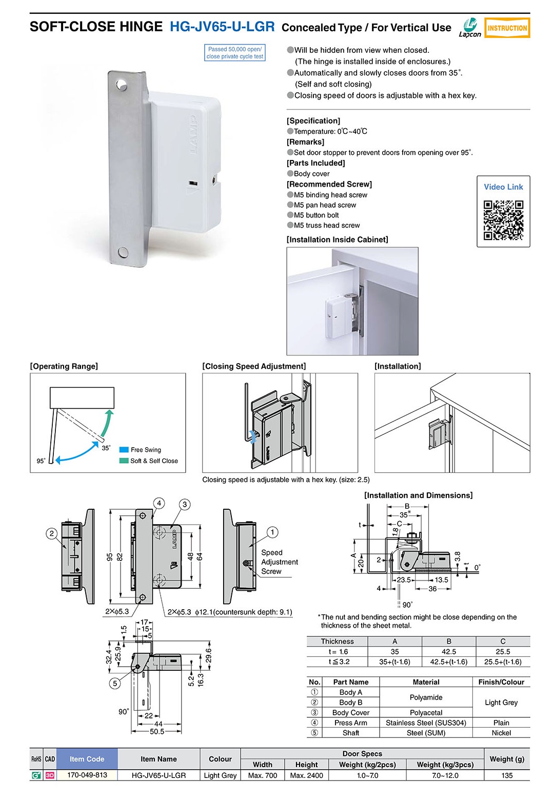 HG-JV65-U-LGR Петля для электрошкафов с демпфером
