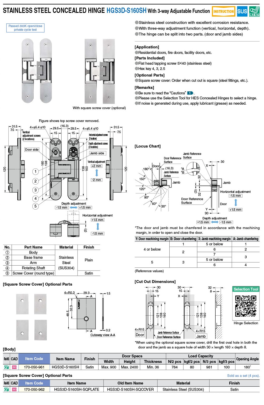 HGS3D-S160SH-SQPLATE Накладка квадратная для петли HGS (комплект на петлю 4 шт)