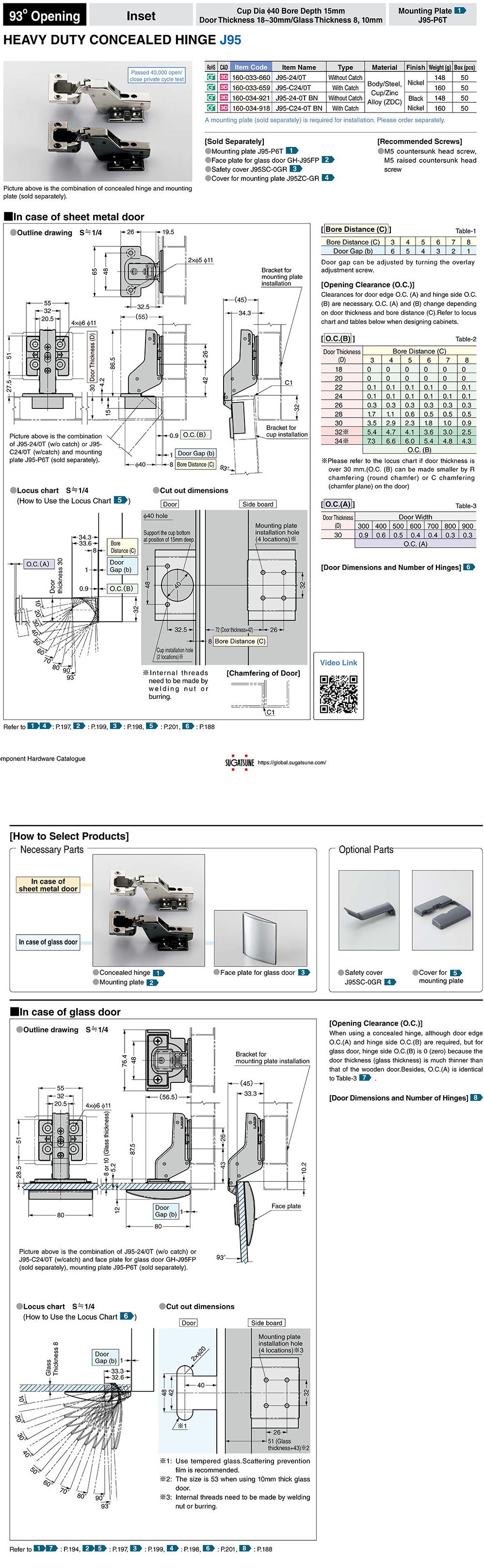 Пройден тест на 40 000 циклов открытия/закрытия. Простая установка и демонтаж одним нажатием. Максимальный вес двери: 25 кг с 2 шт., 40 кг с 3 шт. Монтаж типа -клип (Snap on)