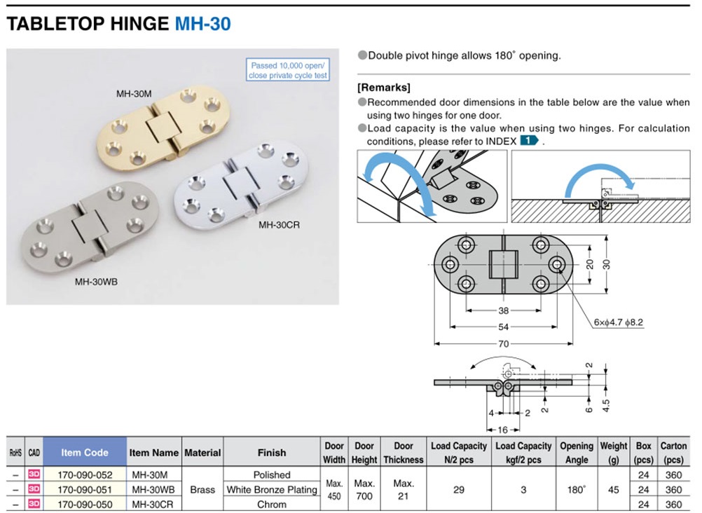 MH-30WB Петля для столешницы из латуни, цвет матовый никель