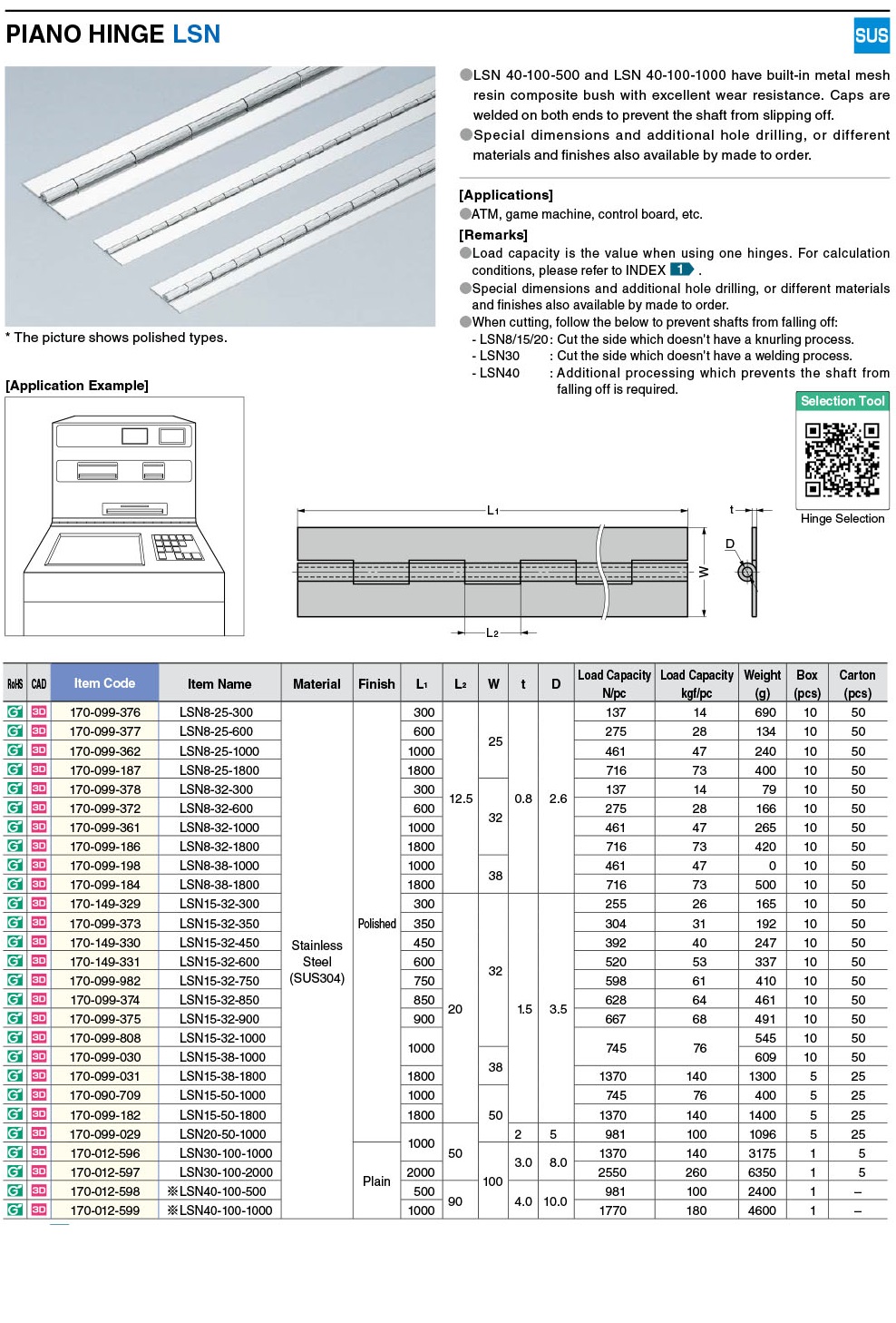 LSN8-32-1000 Петля рояльная 32*0,8*1000 мм из нержавеющей стали