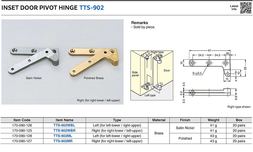 TTS-902WBR Петля внутренняя поворотная, правая, матовый никель